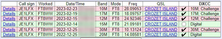 現在も精力的に運用中のCrozet Is FT8WWのログがLoTWにアップロードされてマッチをした。