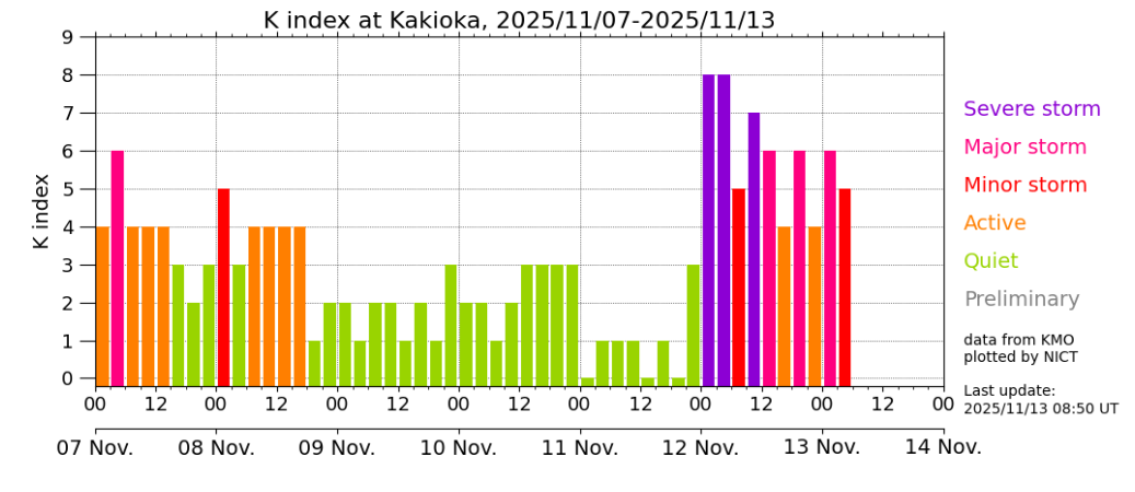 Aインデックスが127でKインデックスが7というコンディションの悪さだったが、太陽黒点数が150を記